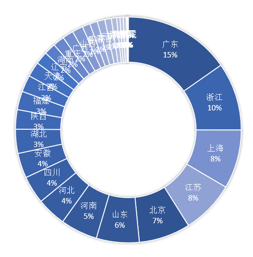 圖:2020年度各省份開標環衛項目年化額全國市場占比
