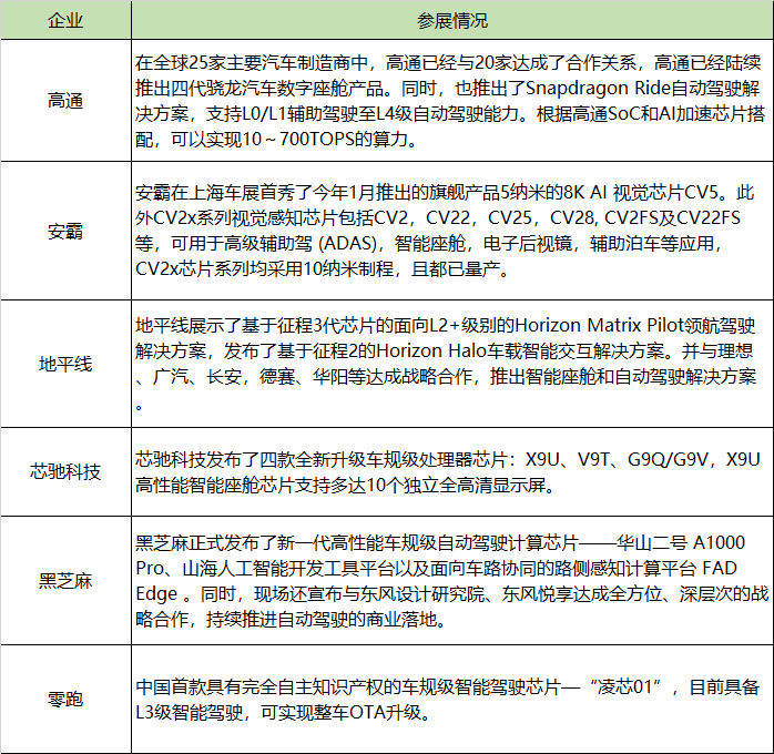 高通、安霸、地平線、芯馳科技、黑芝麻、零跑等企業都展示了自己的芯片產品。值得一提的是相比自動駕駛芯片,展商更側重于展示自己的智能座艙芯片方案,這個領域國產產品的落地和進展目前也確實是可以期待的。而智能座艙無疑是本屆車展OEM、傳統TIER1和其他創業公司展示自己的一大亮點。