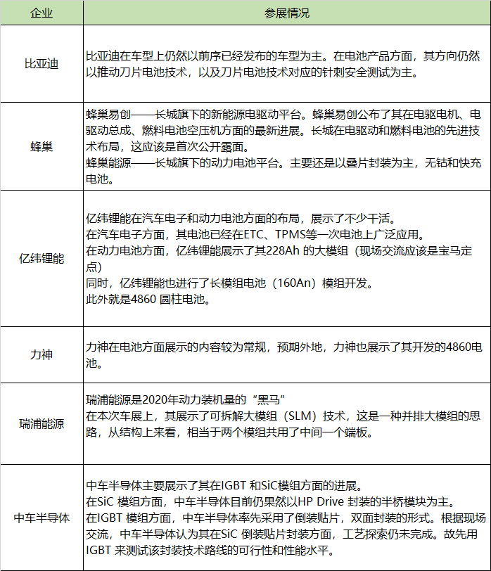 我們認為電動和電氣化領域還會有很多新的變化和機會。電池方面,在寧德時代領導的本土集中度提升的趨勢下,仍然有新的技術團隊和資本扎進動力電池產業。本次參展動力電池的主要廠商包括瑞浦能源、億緯鋰能、蜂巢能源和力神。其中瑞浦和億緯在裝機量上已經是2020-2021年涌現出的“小黑馬”,同時在電芯新產品上也不難發現兩者依托產業“實用性”獨立創新。電驅動電控方面,以中車半導體和蜂巢易創顯示出了對汽車市場、氫能市場的重視和野心。