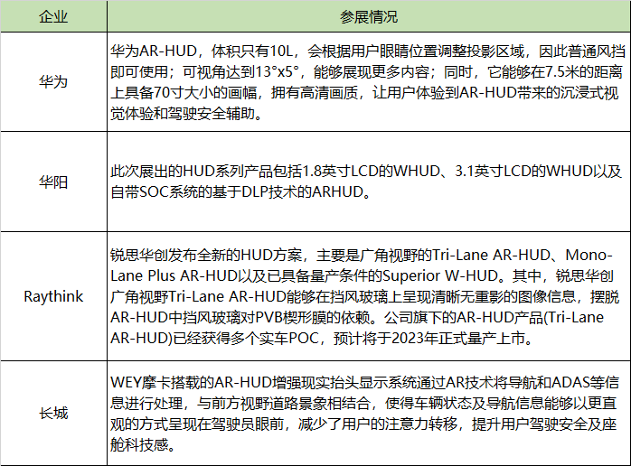 Hud及AR Hud是本屆上海車展的一大亮點,WEY摩卡、吉利星越L、上汽大眾ID.6等車輛均搭載了AR Hud。華為、華陽、Raythink、怡利電子等企業都展示了自己的Hud及AR Hud方案。
