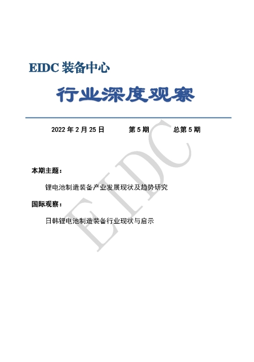 鋰電池制造裝備涉及諸多加工工藝,需要較長時間的技術和經驗積累,其對鋰電池的產品質量、功能及壽命等至關重要,對促進新能源汽車、消費類電子和儲能等行業的健康穩定發展起到基礎性保障作用。目前,鋰電池制造裝備企業主要集中在中、日、韓三國,在規模體量、盈利能力、產品性能和集聚發展方面各具特色,占據全球領先地位。近年來,隨著我國新能源汽車市場的快速增長,動力鋰電池產品需求持續放大,我國鋰電池制造裝備產業加速發展,涌現了一批龍頭企業和先進產品,逐步構建起全球領先的鋰電池制造裝備生態體系。但與此同時,鋰電池生產制造越來越受到全球的關注和重視,產品功能集成化和銷售服務模式的轉變等也為鋰電池制造裝備產業帶來了機遇和挑戰。我們需要把握發展機遇,在深刻認識全球趨勢,全面掌握國內現狀、發展基礎、存在問題和面臨挑戰等基礎上,持續推動鋰電池制造裝備產業高質量穩步增長。為此,工信部裝備中心智能裝備處對當前我國鋰電池制造裝備產業發展情況進行了系統梳理,從產業現狀、產業鏈、存在問題、發展趨勢等維度深入分析,并結合先進國家經驗做法提出我國鋰電池制造裝備產業發展建議,為行業主管部門、地方政府等提供研究支撐和決策參考。
